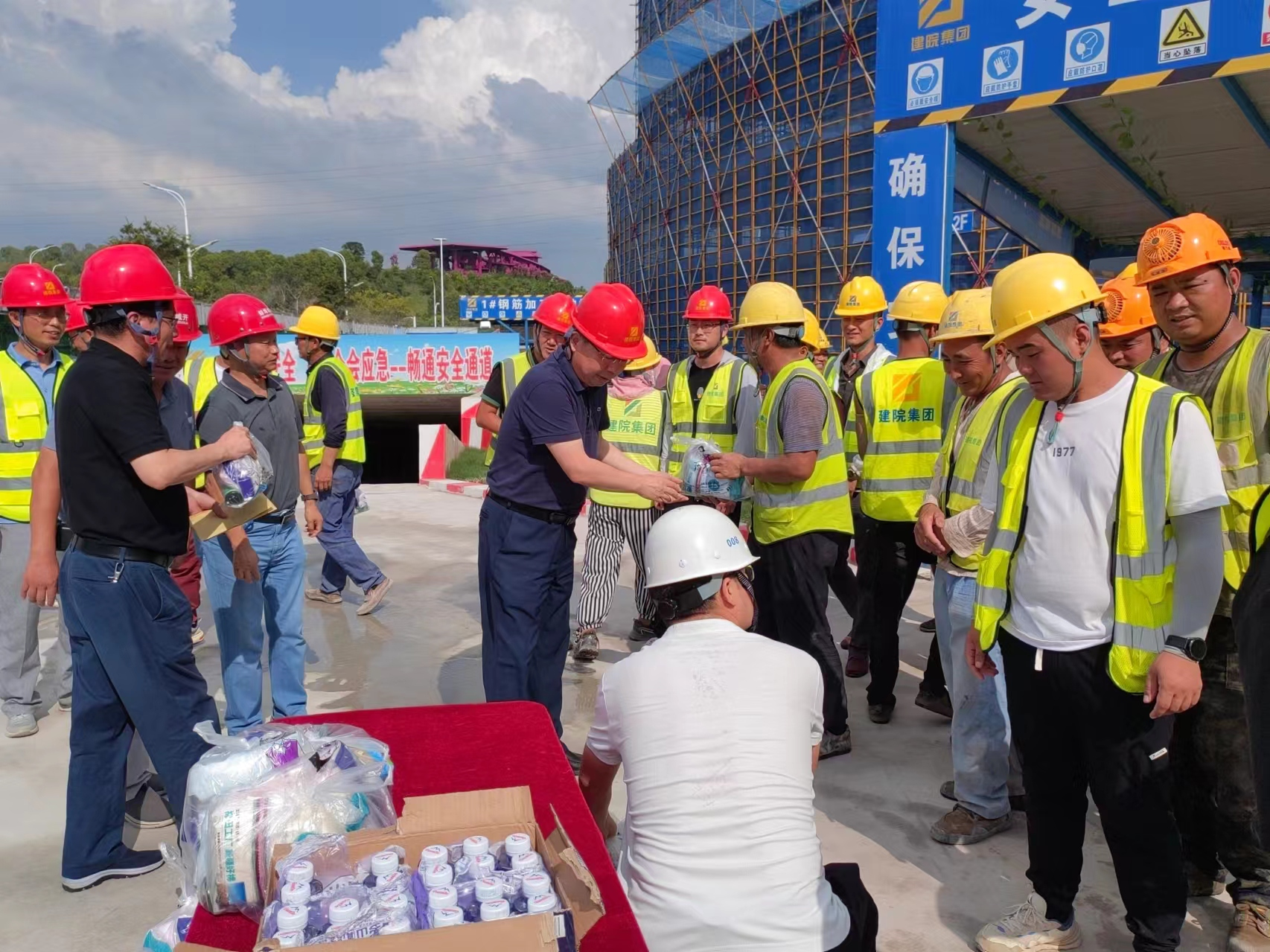 炎炎夏日送清涼,絲絲關(guān)懷暖人心。持續(xù)高溫悶熱天氣,給堅(jiān)守一線的職工帶來(lái)了嚴(yán)峻“烤”驗(yàn)。為切實(shí)做好抗高溫防暑降溫工作,有效防控高溫中暑事件和安全生產(chǎn)事故的發(fā)生,切實(shí)維護(hù)廣大職工的勞動(dòng)安全和健康權(quán)益,按照市國(guó)控集團(tuán)黨委、市國(guó)控集團(tuán)工會(huì)的統(tǒng)一部署,7月25日-7月26日,集團(tuán)黨委書記、董事長(zhǎng)陳建功,黨委副書記、副董事長(zhǎng)、總經(jīng)理劉冰,黨委委員、副總經(jīng)理翁暢等分別帶隊(duì)走訪慰問(wèn)了建筑科創(chuàng)中心項(xiàng)目部、新二中站點(diǎn)、幸福河湖項(xiàng)目部、馬城糧庫(kù),為堅(jiān)守在一線的項(xiàng)目員工送上毛巾、香皂、清涼油等慰問(wèn)品,對(duì)大家的辛苦付出表示感謝,對(duì)一線職工不畏高溫、堅(jiān)守崗位、拼搏奉獻(xiàn)的精神表示贊揚(yáng),同時(shí)叮囑大家要努力克服高溫天氣帶來(lái)的困難和挑戰(zhàn),注意防暑降溫,做好自身防護(hù),確保各項(xiàng)工作安全有序推進(jìn)。